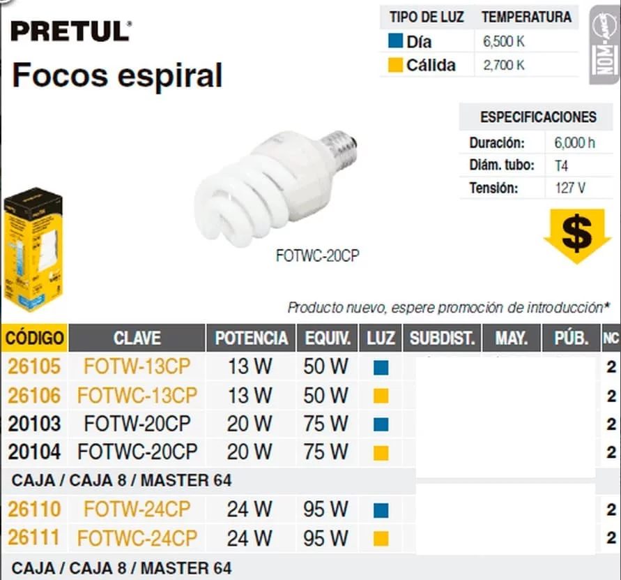 FOCO ESPIRAL 13W-50W LUZ BLANCA