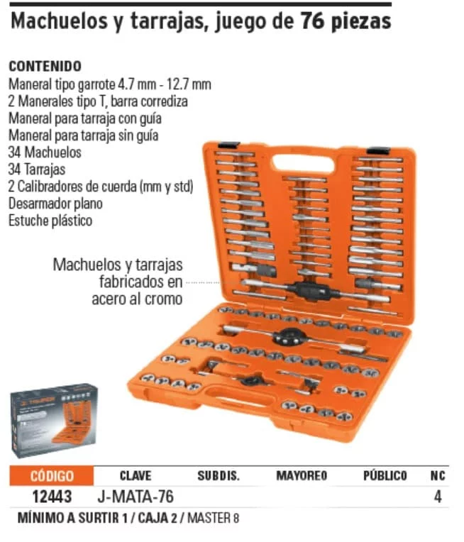 JUEGO DE MACHUELOS Y TARRAJAS 76PZS. J-MATA-76 TRU