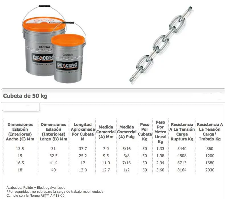 MT.CADENA 1/4 GALVANIZADO DEACERO 31MTS