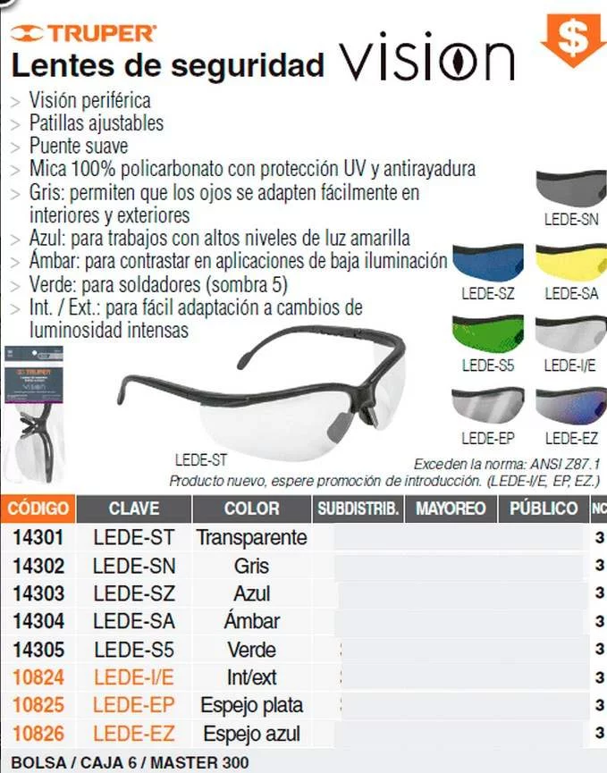 Exceden la norma: ANSI Z87.1