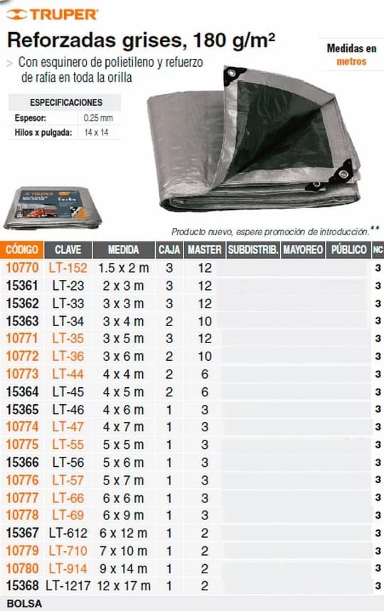 LONA REFORZADA GRIS 5X7 MTS. LT-57 TRUPER