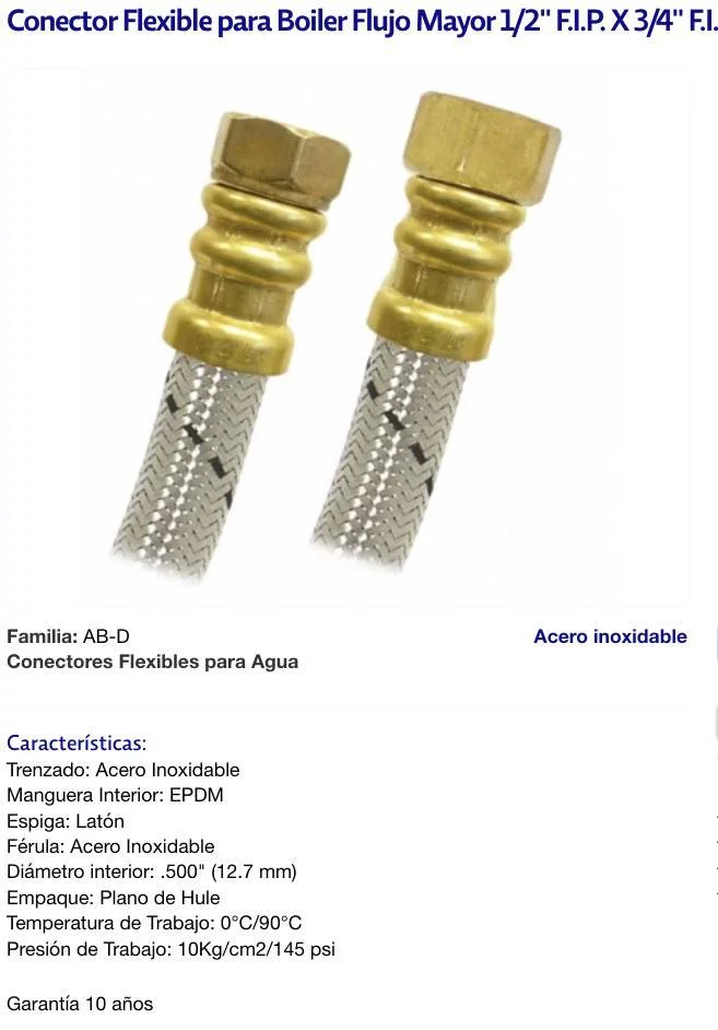 Conectar Flexible para Boiler Flujo Mayor 1/2" F.I.P. X 3/4" El.