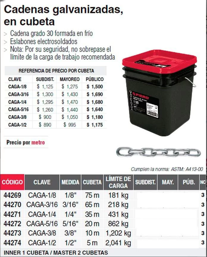 CADENA GALVANIZADA 3/8 (10) FIERO
