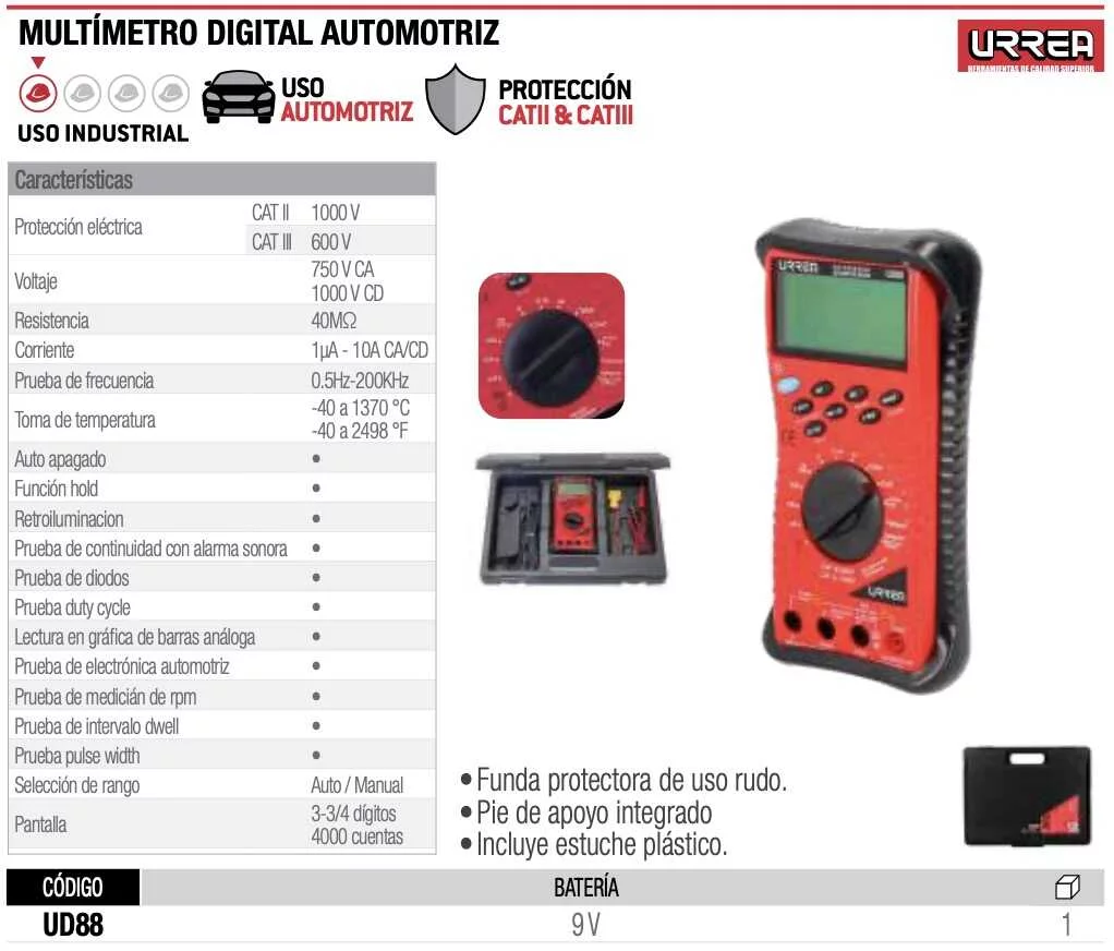 Multimetro digital automotriz autorango Urrea