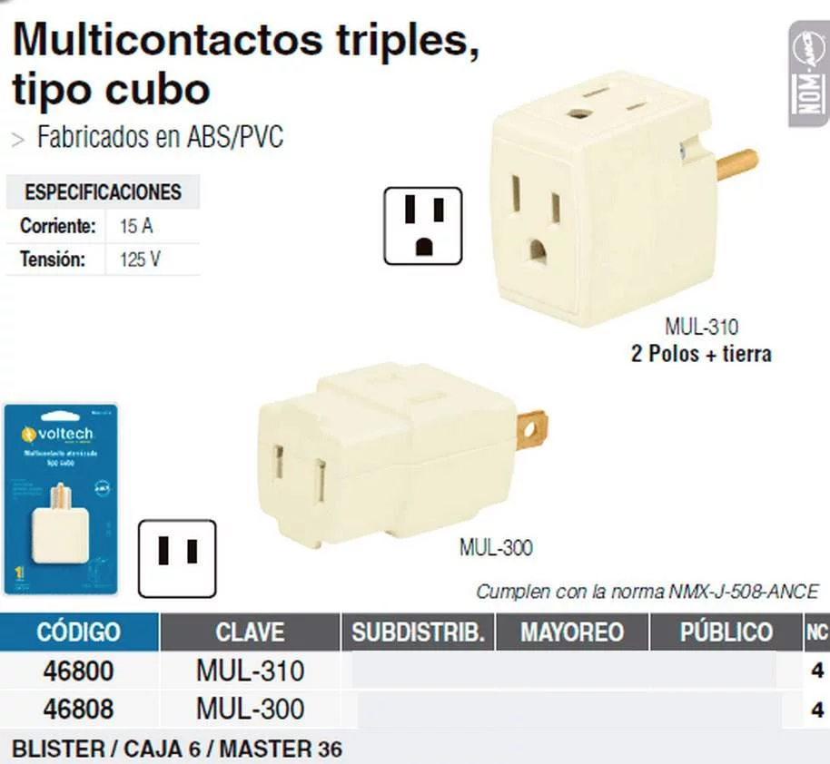 MULTICONTACTO TRIPLE ATERRIZADO TIPO CUBO MUL-310