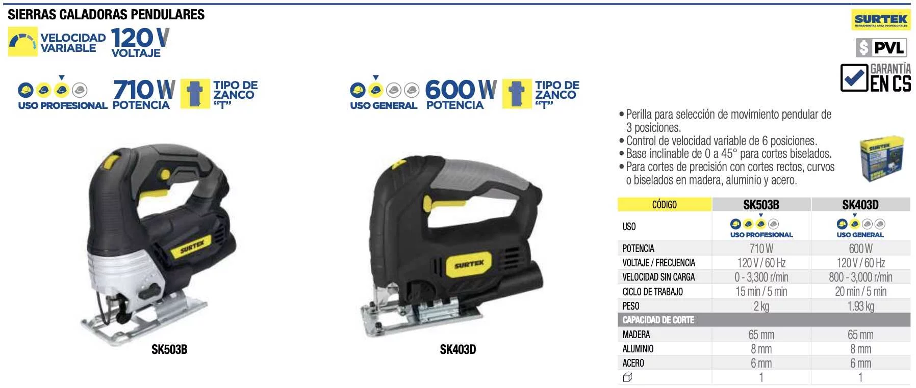Sierra caladora 40mm 710 W 120V, 0 - 3,300 RPM Surtek