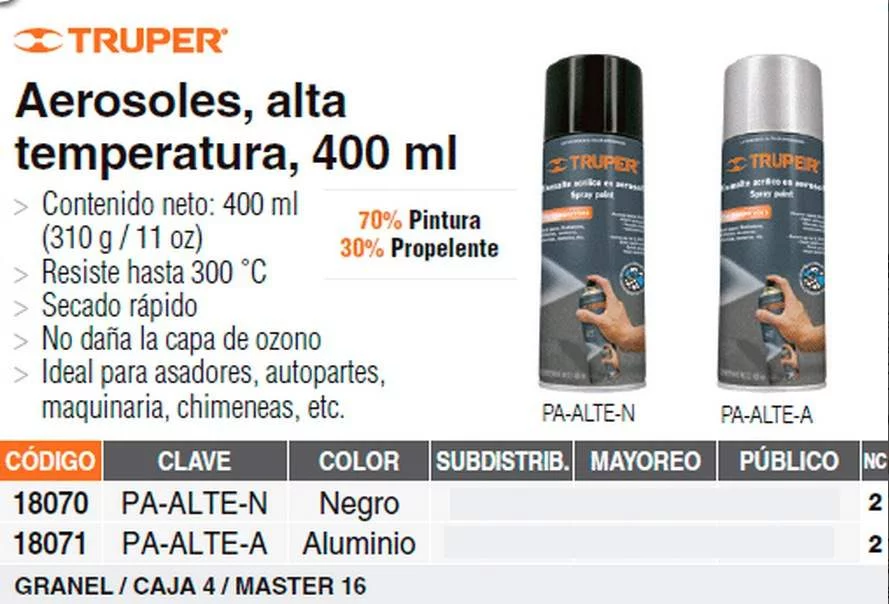 PINTURA AEROSOL SPRAY NEGRO ALTA TEMPERATURA