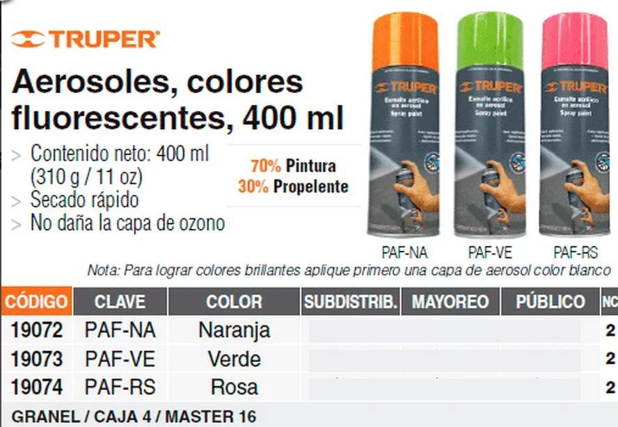 Nota: Para lograr colores brillantes aplique primero una capa de aerosol color blanco