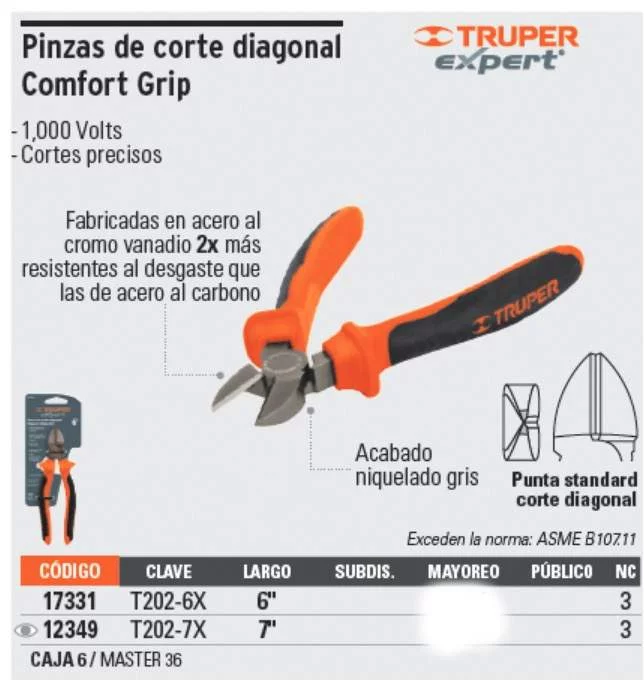 PINZA CORTE DIAGONAL 7 MANGO CONFORT GRIP T202-7