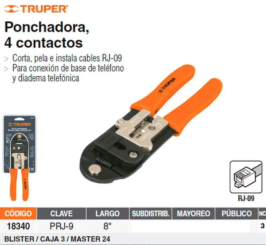 PINZA PONCHADORA DE 4 CONTACTOS PRJ-9 TRUPER