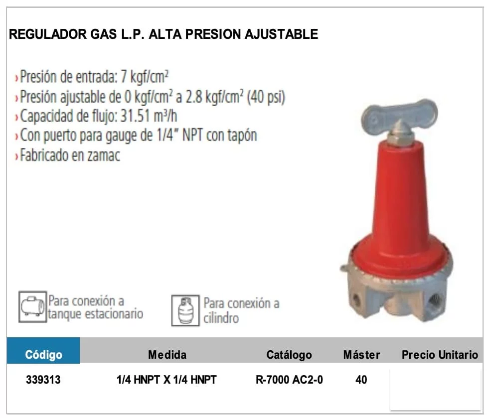 REGULADOR GAS R-7008 AC2-0 ROJO ALTA PRESION