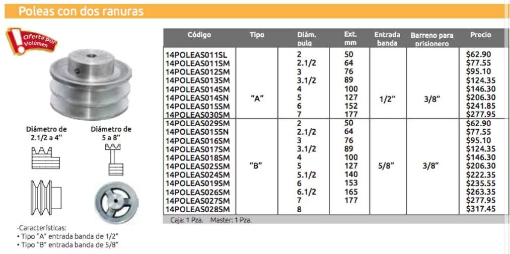 POLEA ALUMINIO 5 2 RANURAS PARA BANDA 5/8 TIPO B