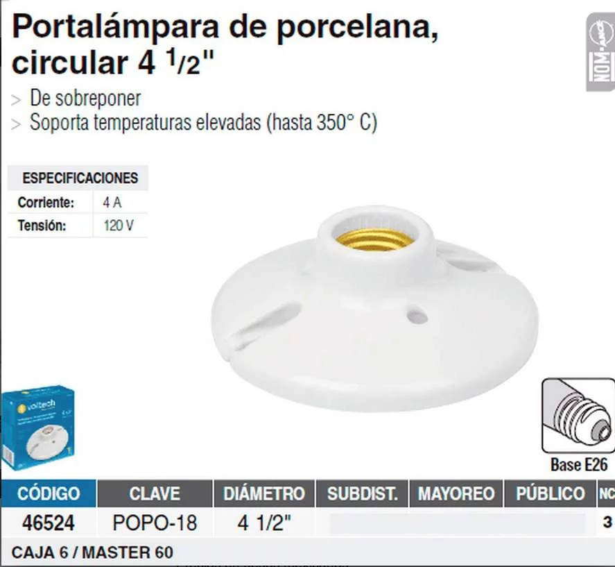 PORTALAMPARA PORCELANA 4 1/2 CIRCULAR POPO-18 VOL