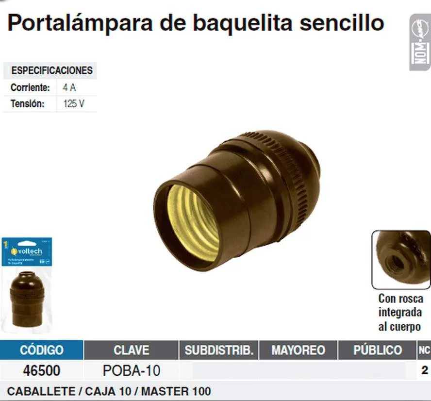 PORTALAMPARA SENCILLO. NEGRO POBA-10 VOLTECH