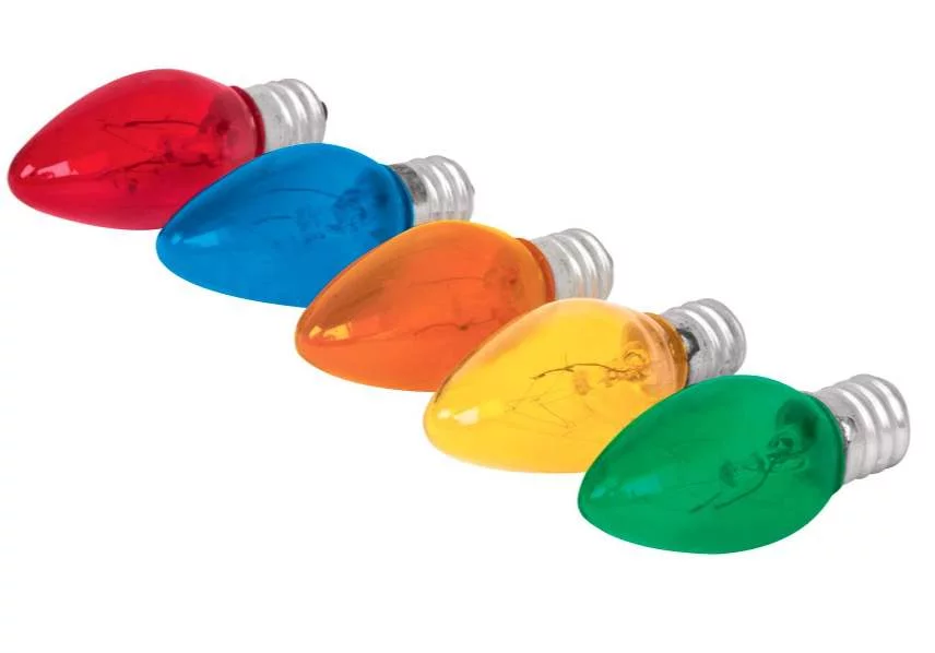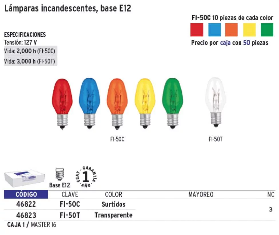 FOCO INCANDESCENTE DE COLORES B.E12 7.5W 50PZS.