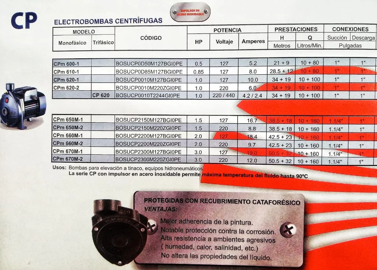 BOMBA CENTRIFUGA 3HP 1 1/4X1 127V 50.5MT PEDROLLO