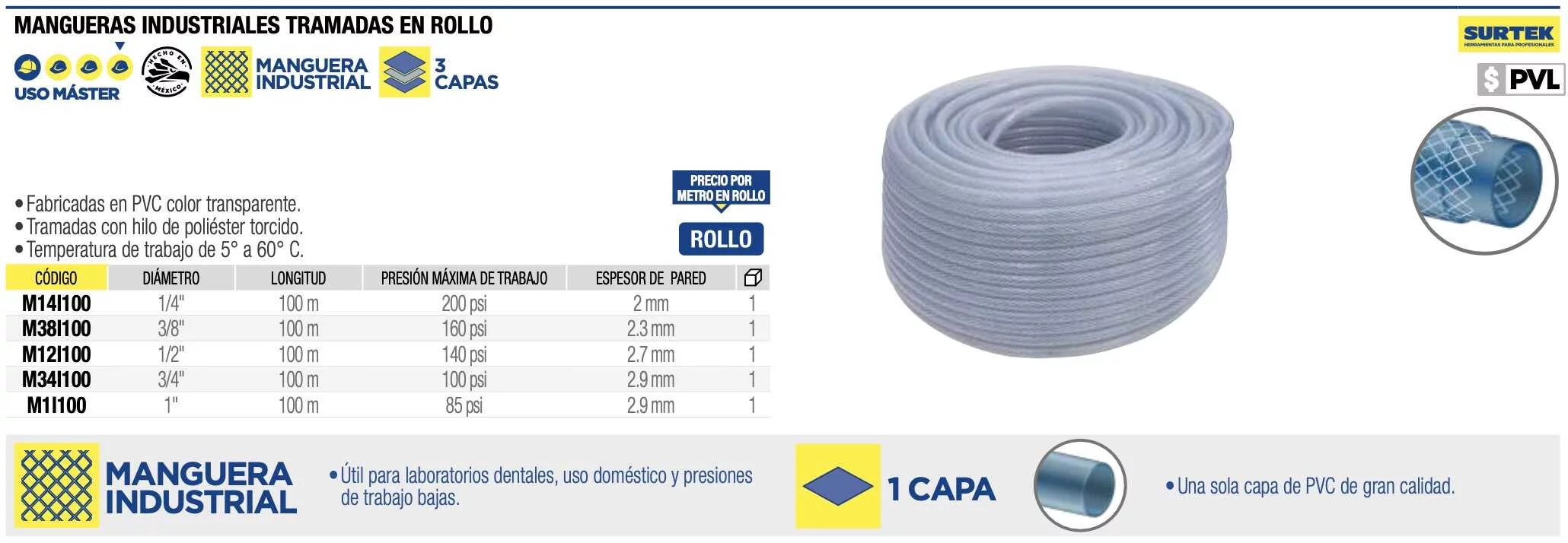 Manguera industrial tramada 3/4'' x 100 m Surtek