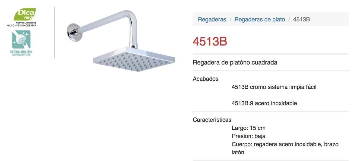 REGADERA CUADRADA ACERO INOX CON BRAZO Y CHAPETON
