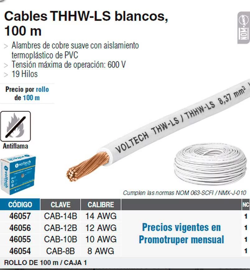 ROLLO CABLE THHW-LS 8 AWG (100) BLANCO VOLTECK
