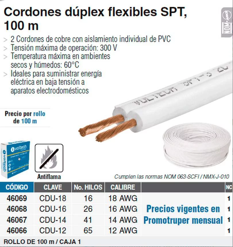 Cordones dúplex flexibles SPT, 100 m