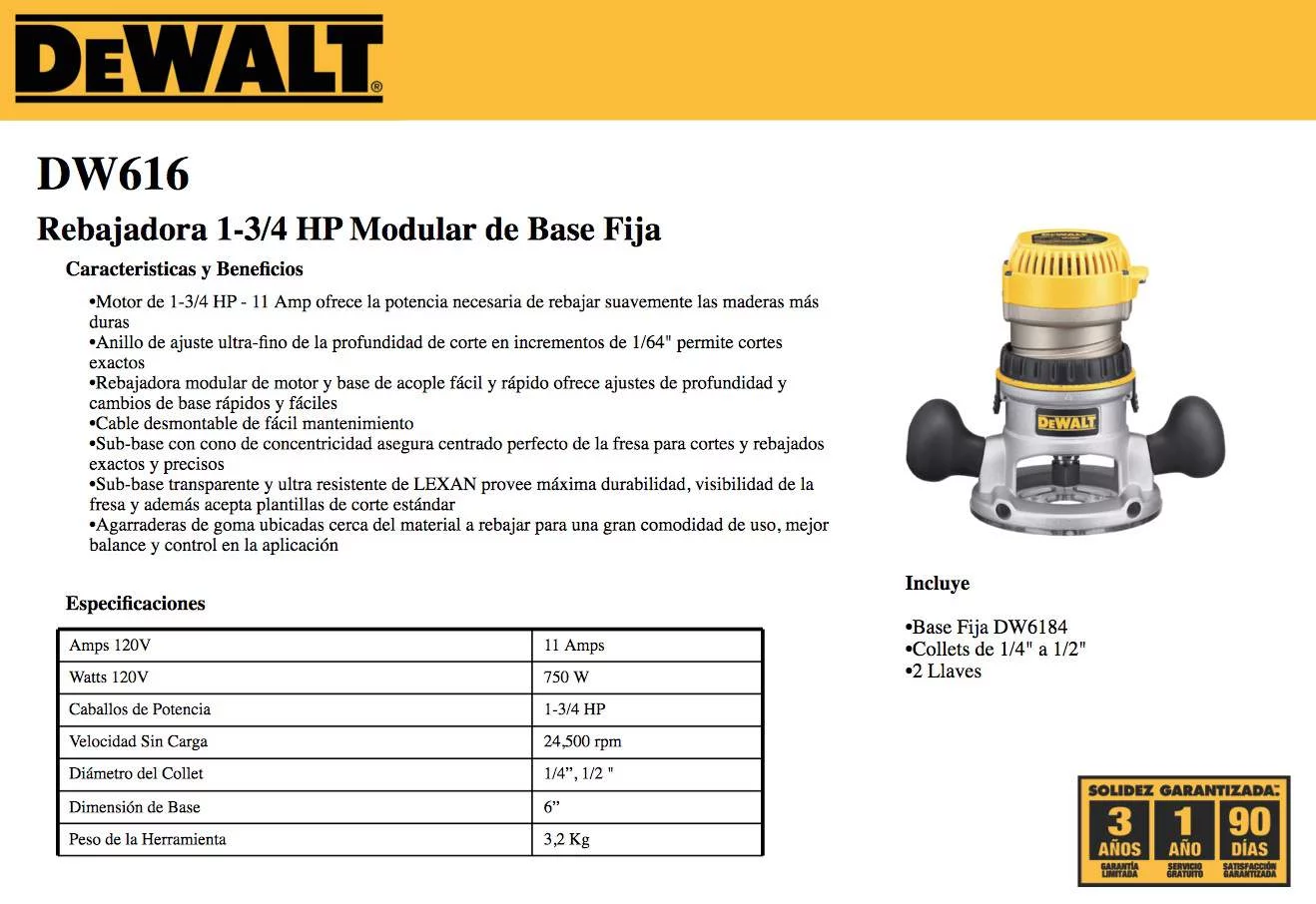 ROUTER DEWALT 1-3/4HP 11A 750W 24400RPM.