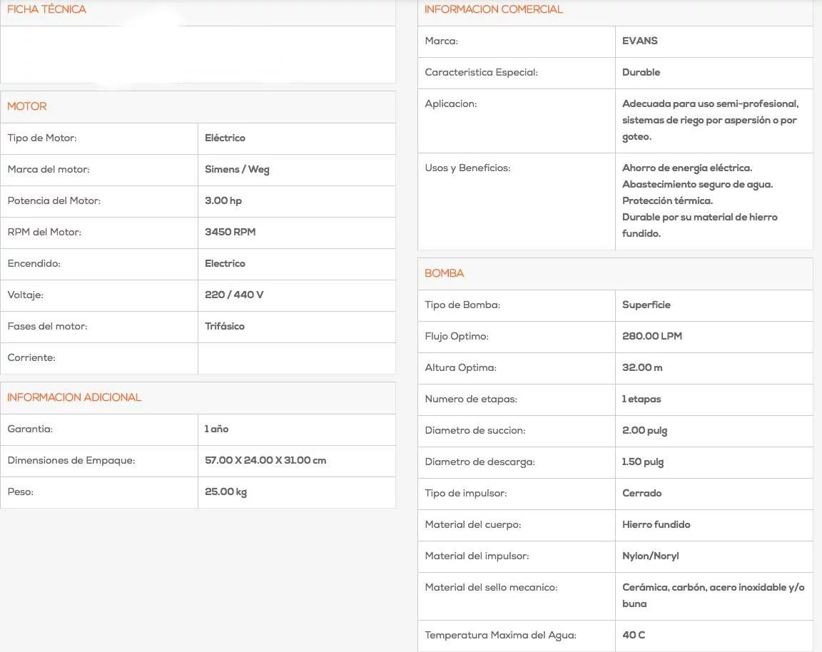 BOMBA CENTRIFUGA 3HP TRIFASICA 2X1.5