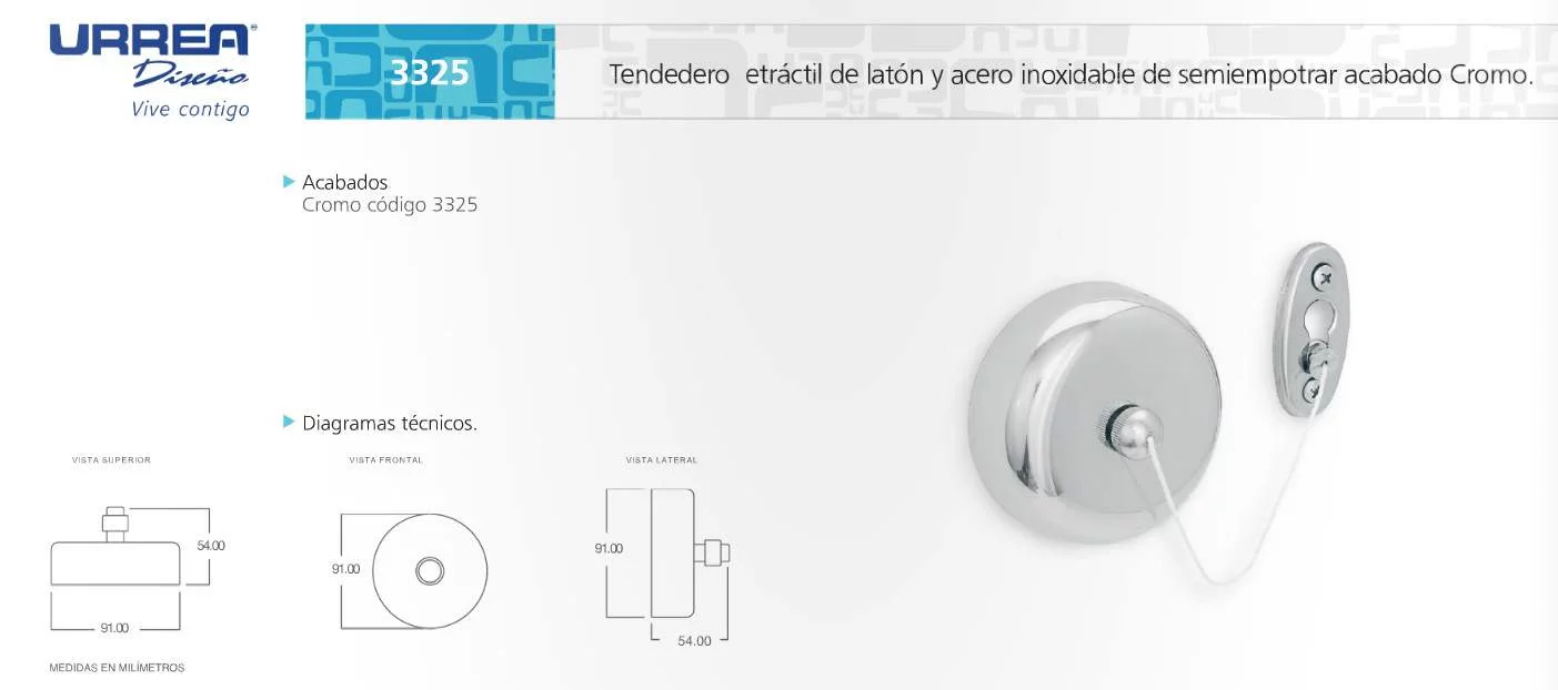 Tendedero etráctil de latón y acero inoxidable de semiempotrar acabado Cromo.