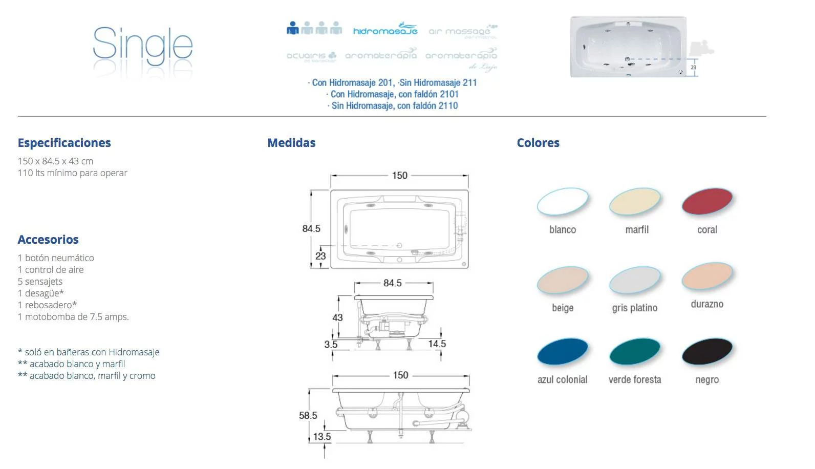 TINA SINGLE BLANCA SIN HIDRO SIN MANIJAS