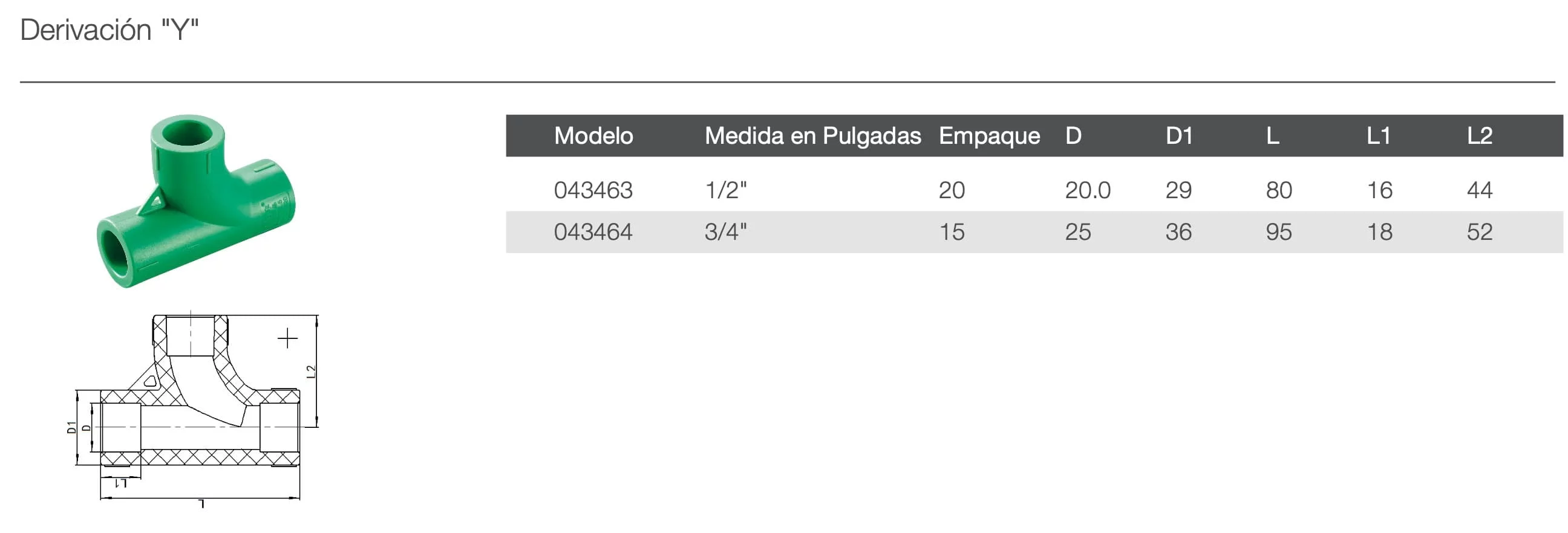 TEE 25MM (3/4 ) DERIVACION 'Y' 50% +FLUJO RIIFO