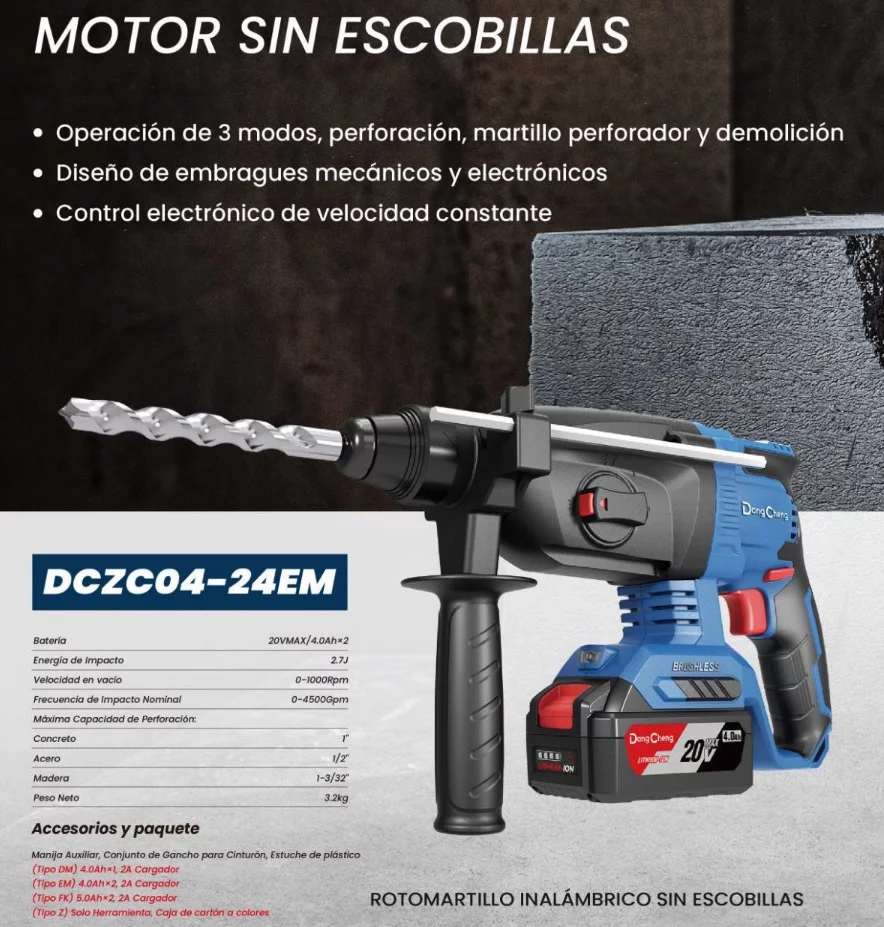 ROTOMARTILLO SDS PLUS DONGCHENG 2PILAS 4AH 2.7J