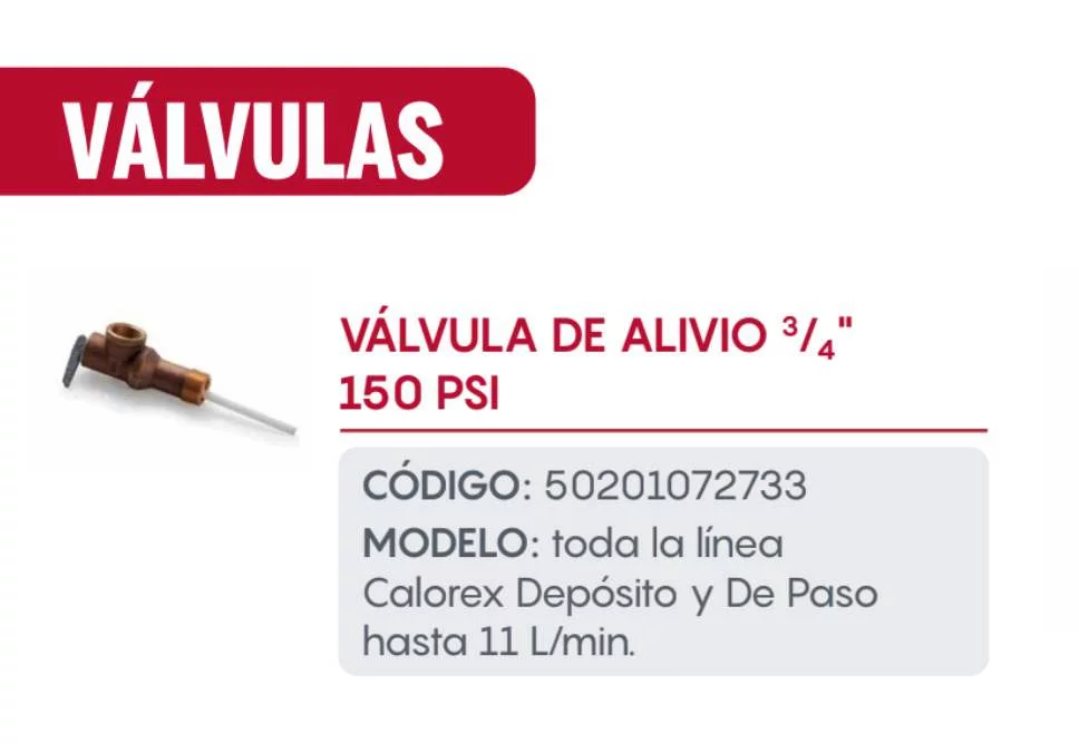 VALVULA DE ALIVIO 3/4 150PSI CALOREX