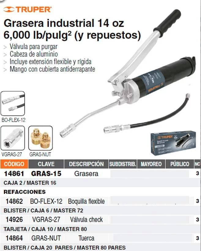 Grasera industrial 14 oz 6,000 lb/pulg2 (y repuestos)