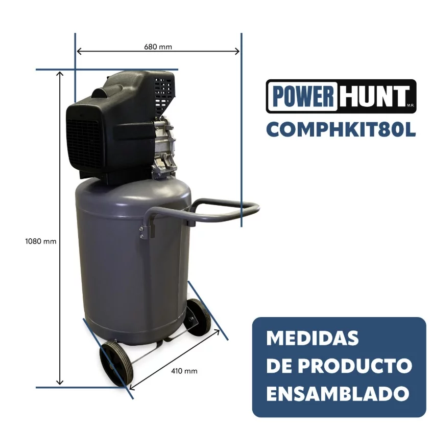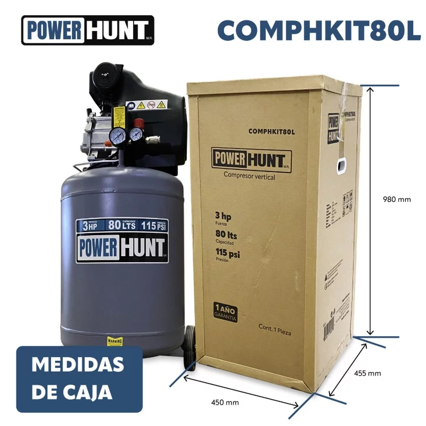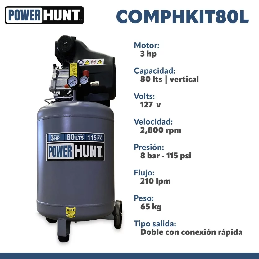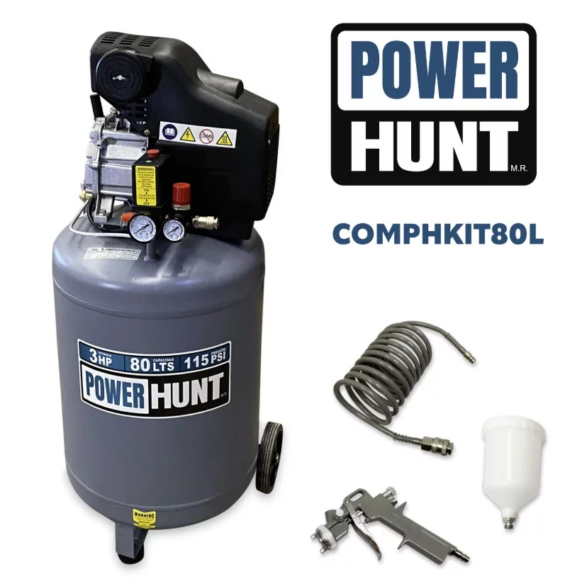 COMPRESOR POWERHUNT 3HP 80L 110V VERTICAL 210LPM/115PSI