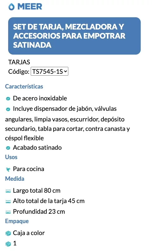TARJA MEER CNX 80X45X23.3 INOX/SATIN