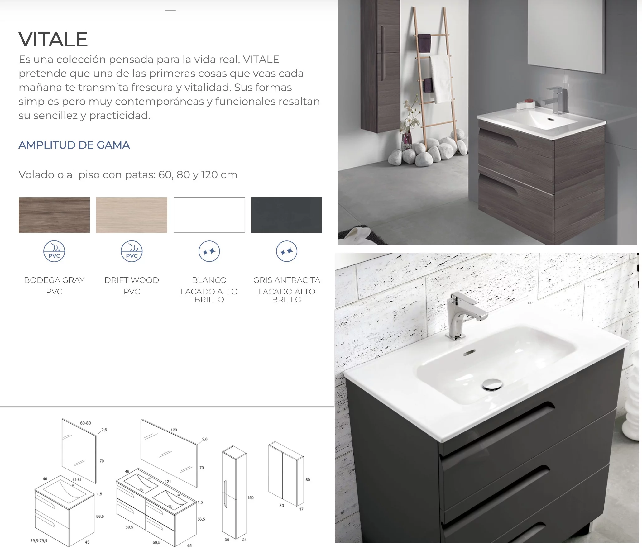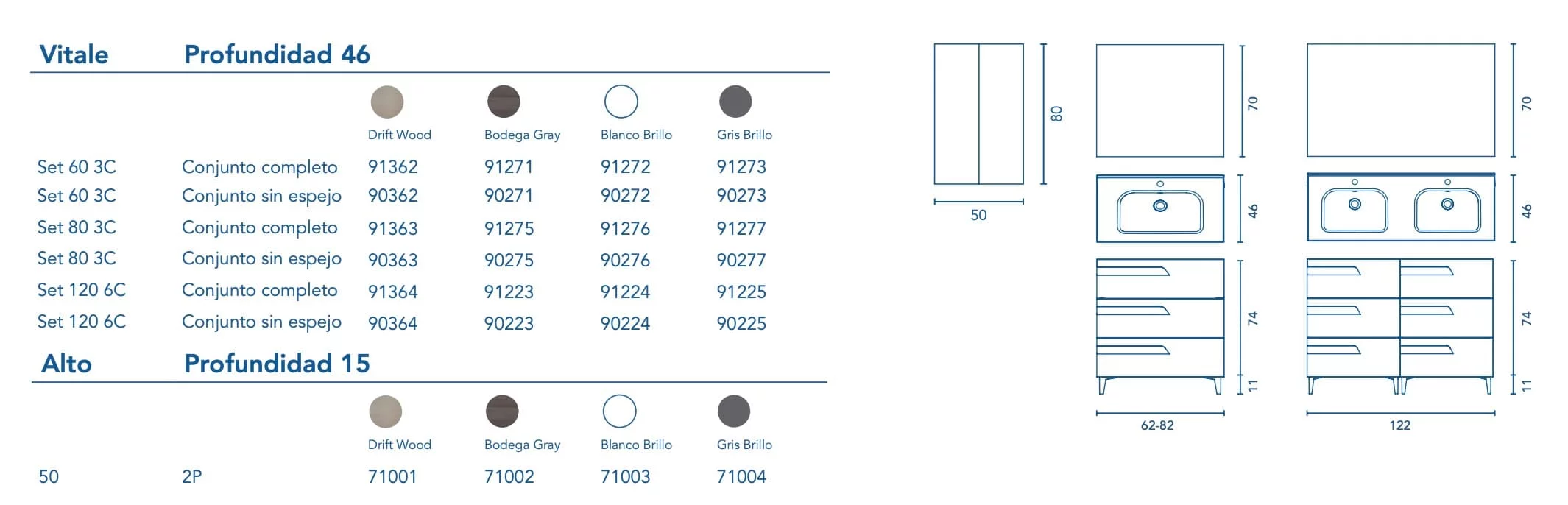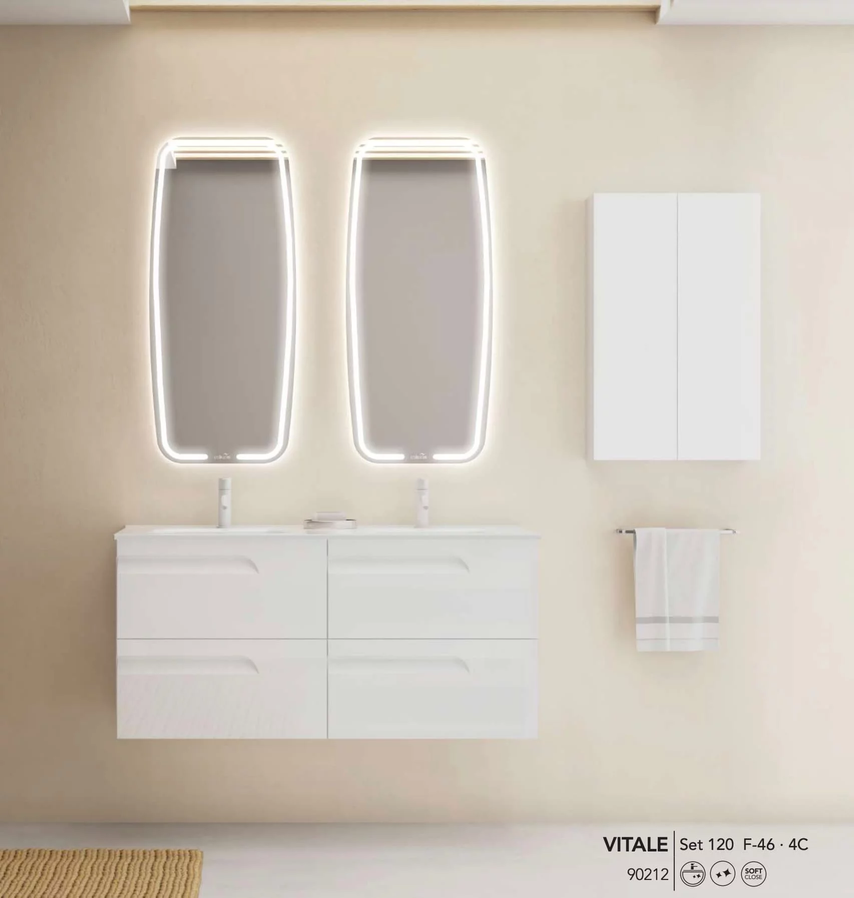 CONJUNTO VITALE DOBLE BRILLO BLANCO 120 SIN ESPEJO