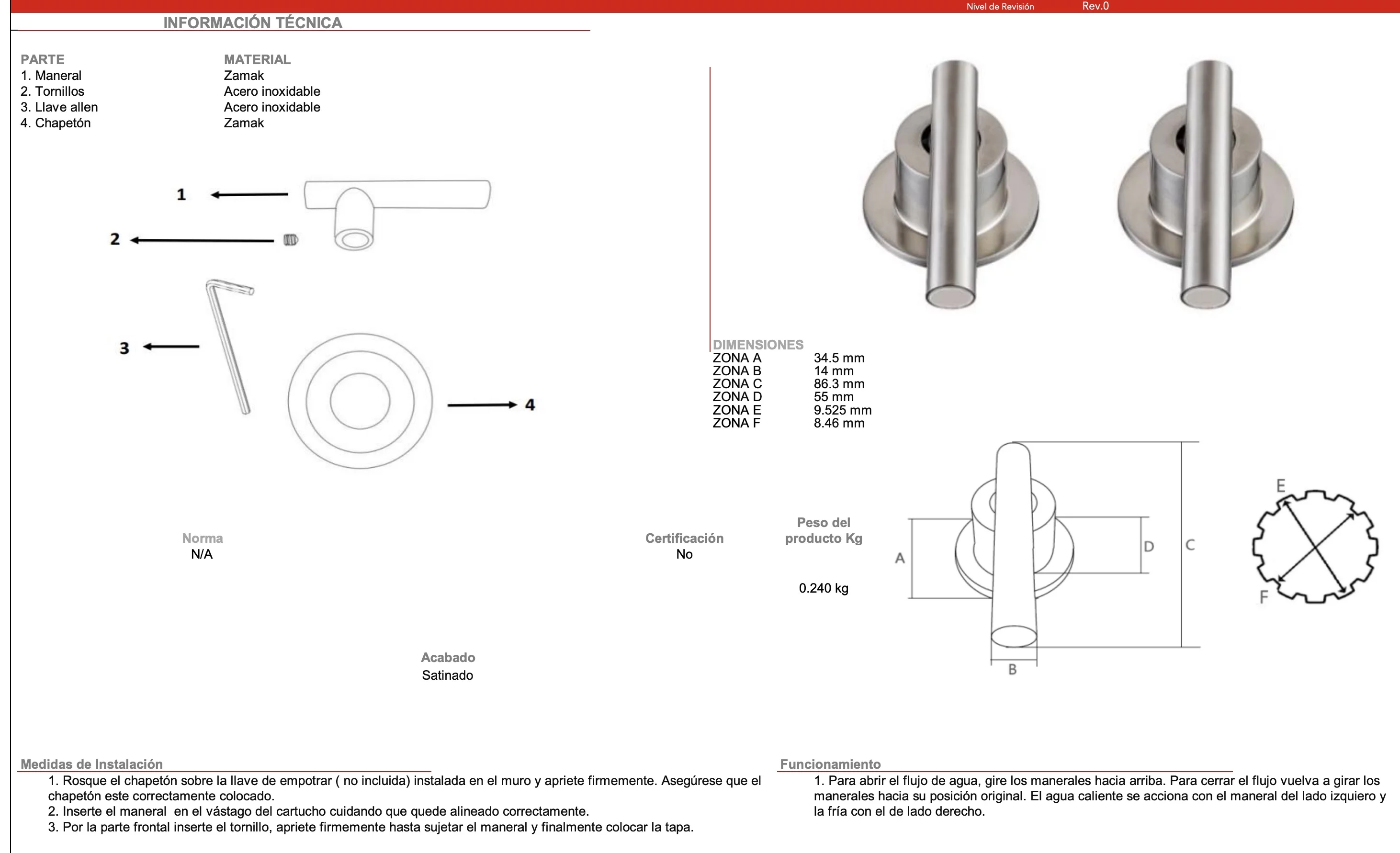 JUEGO DE MANERALES PALANCA GRANDES REGADERA SATINADO