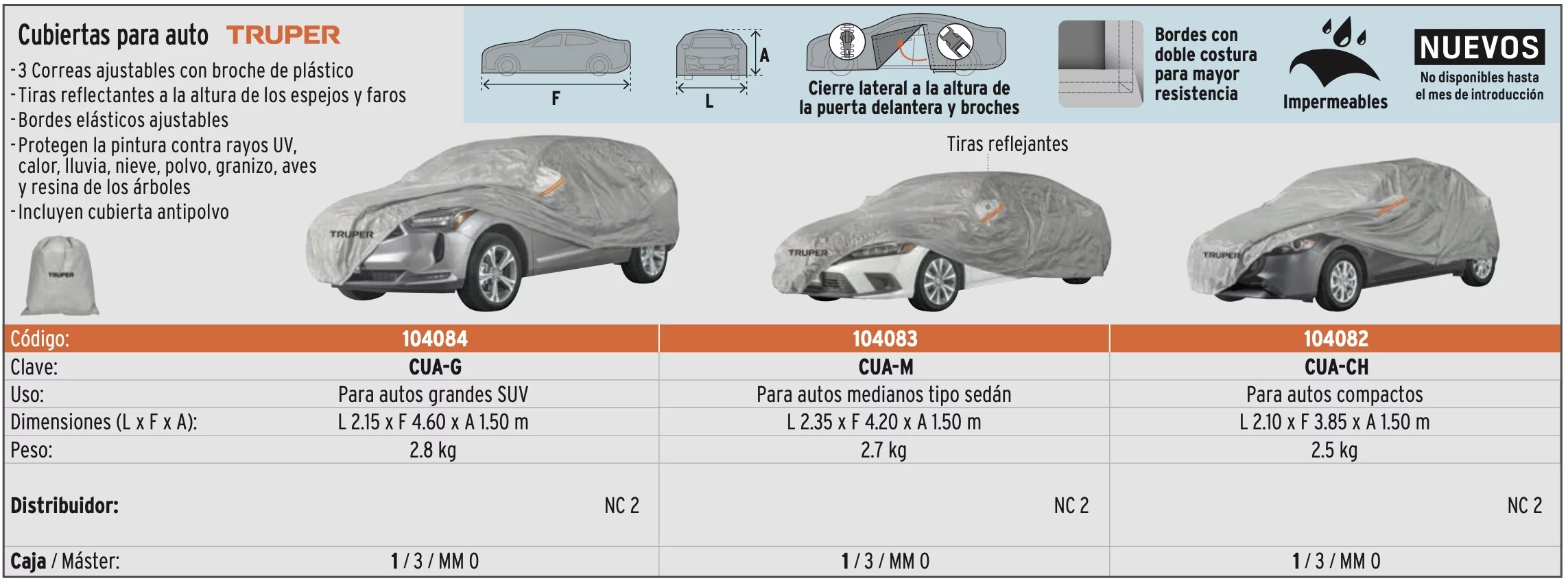 CUBIERTA PARA AUTOS MEDIANOS, TRUPER,CUBIERTAS PARA AUTO