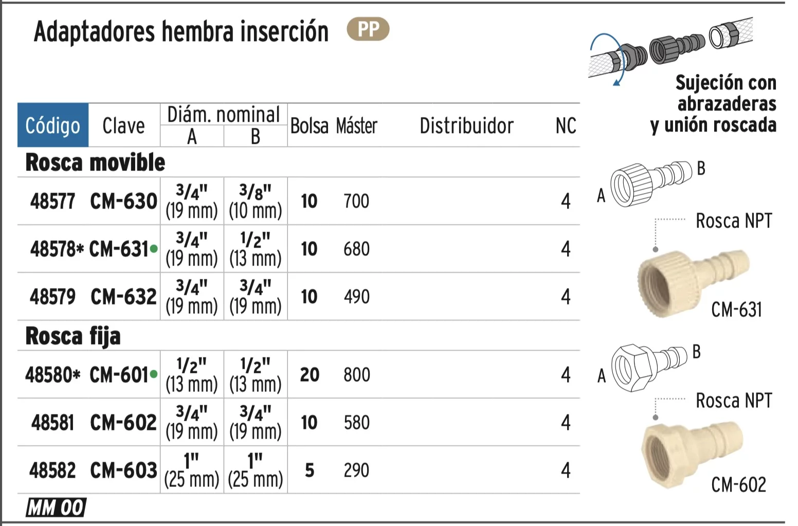 ADAPTADOR INSERCION ROSCA INTERIOR DE 1X1', FOSET,CONEXIONES PLASTICAS PARA MANGUERA