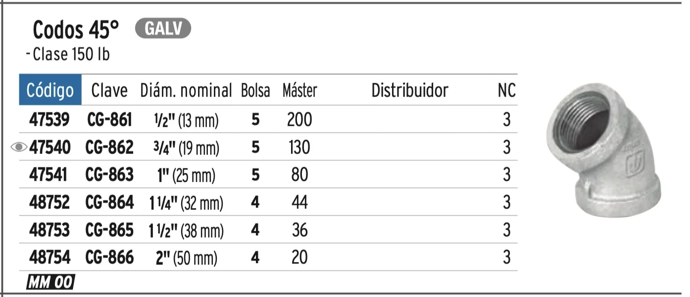 CODO 45∞ ACERO GALVANIZADO DE 2', FOSET,CONEXIONES Y NIPLES GALVANIZADAS