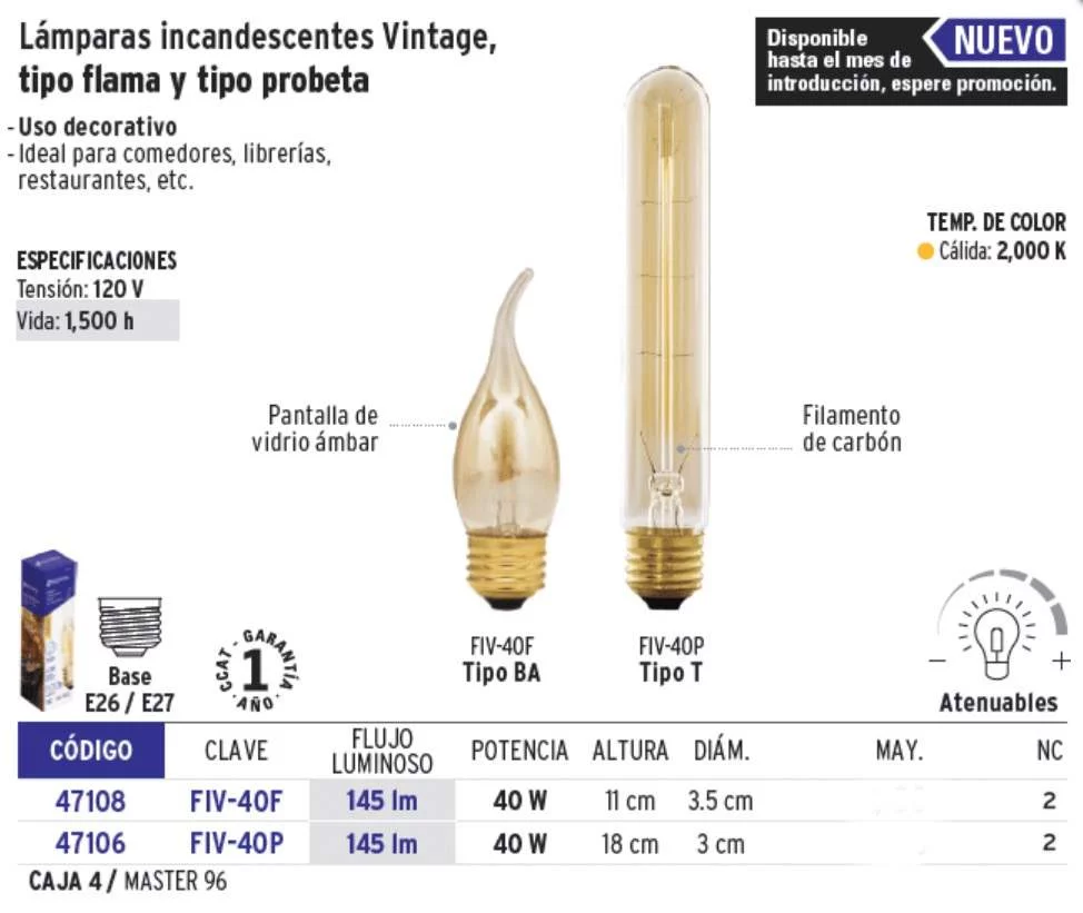 FOCO INCANDESCENTE VINTAGE 40W FLAMA