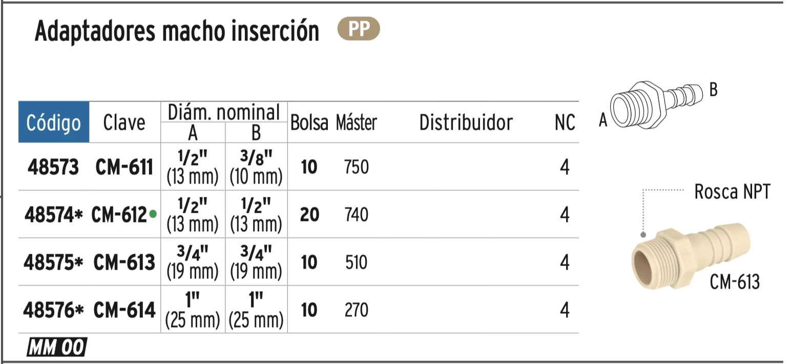 ADAPTADOR INSERCION ROSCA EXTERIOR DE 1/2' X 1/2', FOSET,CONEXIONES PLASTICAS PARA MANGUERA