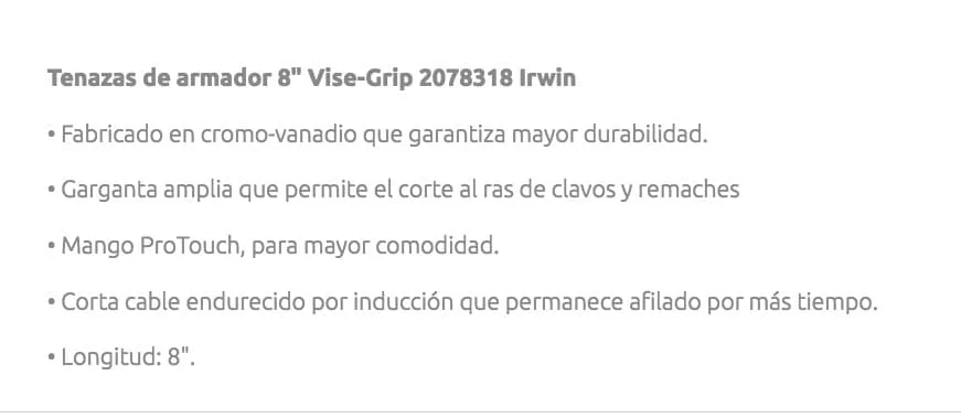 Tenazas de armador 8" Vise-Grip 2078318 Irwin