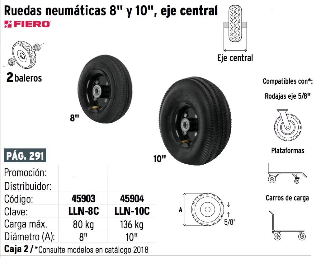 Ruedas neumáticas 8" y 10", eje central K FIERO
