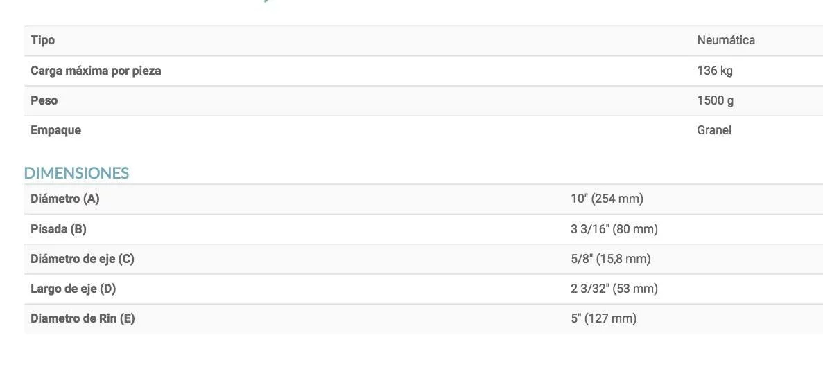 LLANTA NEUMATICA 10 CON EJE CENTRAL TRUPER