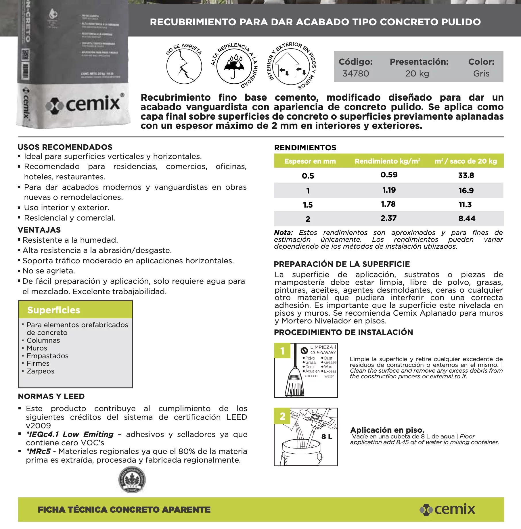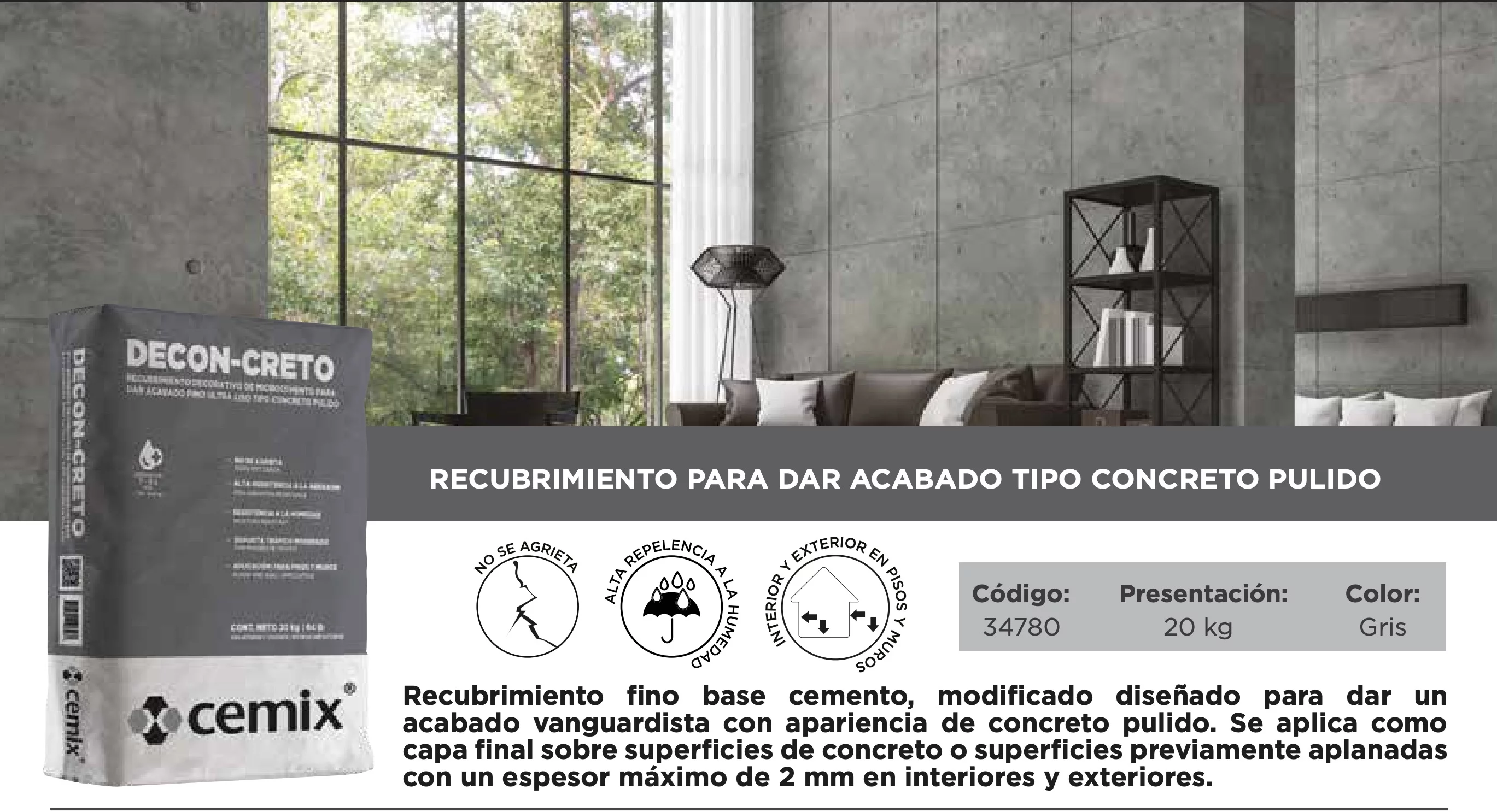 DECON-CRETO CONCRETO PULIDO 20KG CEMIX GRIS .5-2MM