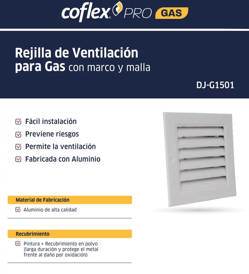 REJILLA DE VENTILACION PARA GAS CON MARCO Y MALLA