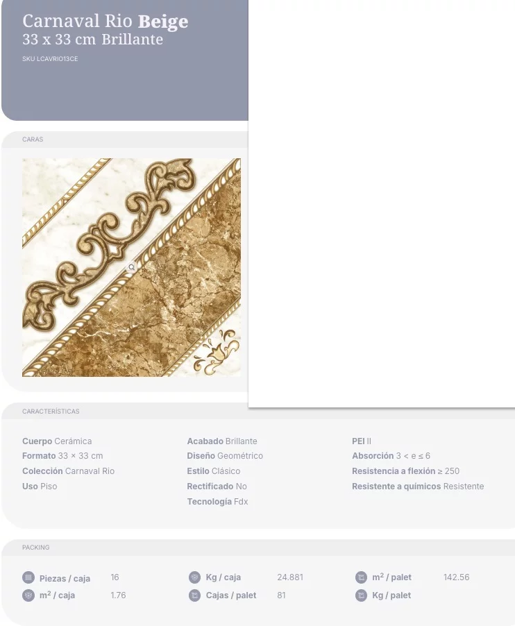 CJ. 33X33 CARNAVAL FDX BEIGE 1A 16PZ 1.76M