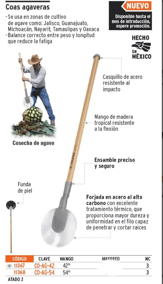 Forjada en acero al alto carbono con excelente tratamiento térmico, que proporciona mayor dureza y uniformidad en el filo capaz de penetrar y cortar raíces