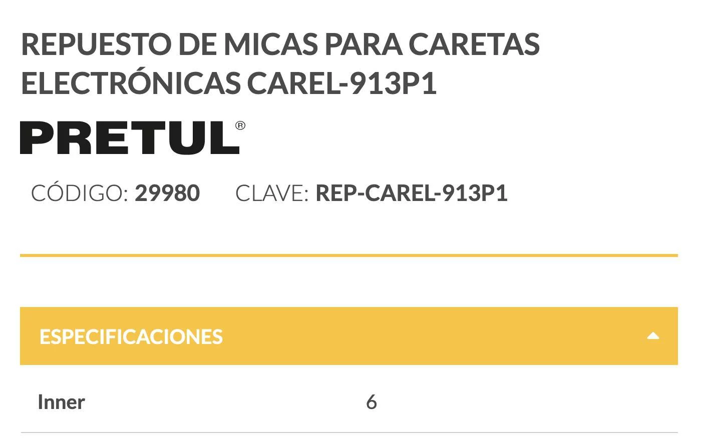REPUESTO DE MICAS PARA CARETAS ELECTRONICAS CARE