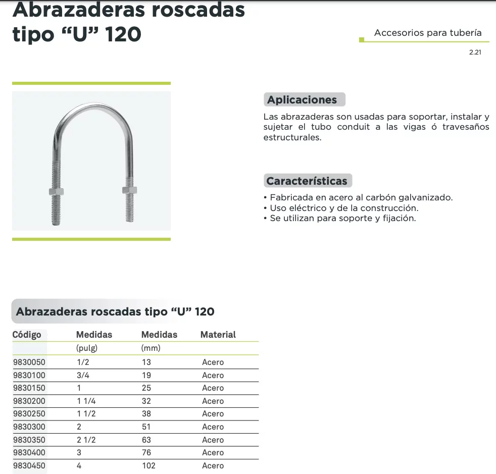 ABRAZADERA TIPO U CON TUERCA 1/2 X 3